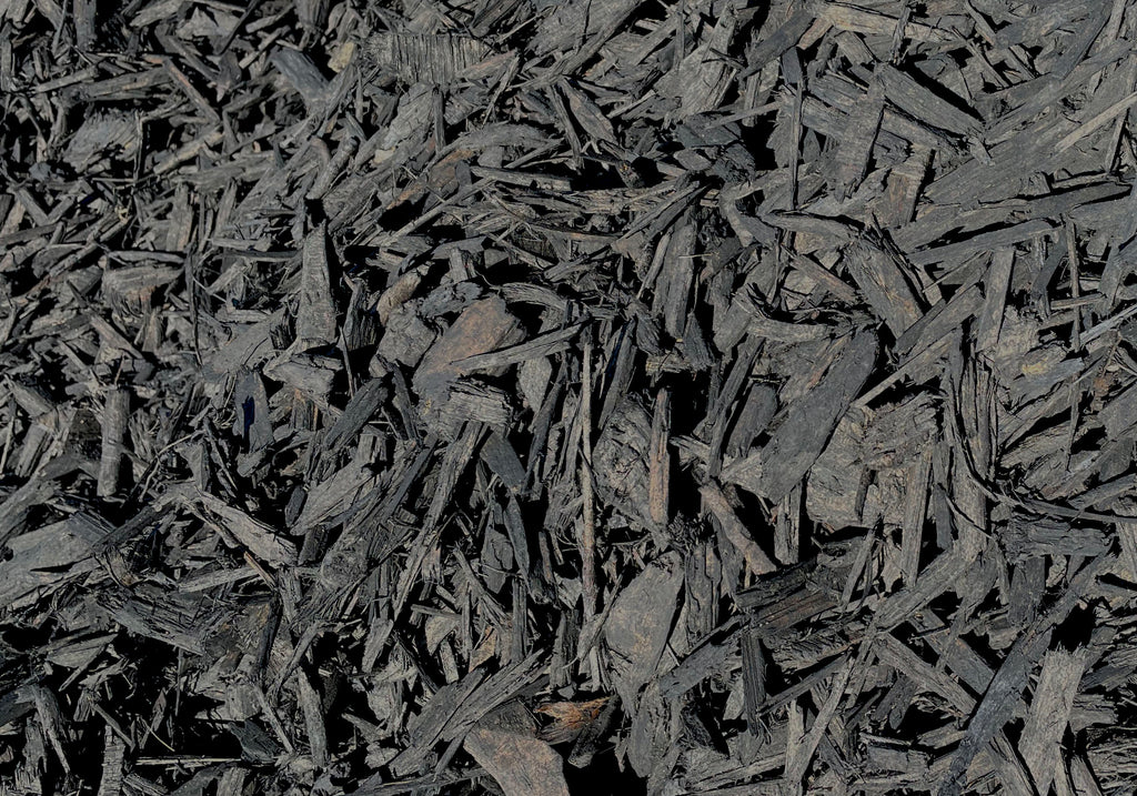 Bold Black Colored Landscape and Garden Mulch. Beautiful wood chip mulch in a dark black color dyed with non-toxic coloring. Helps reduce weed growth and conserve soil moisture. Pickup Location: